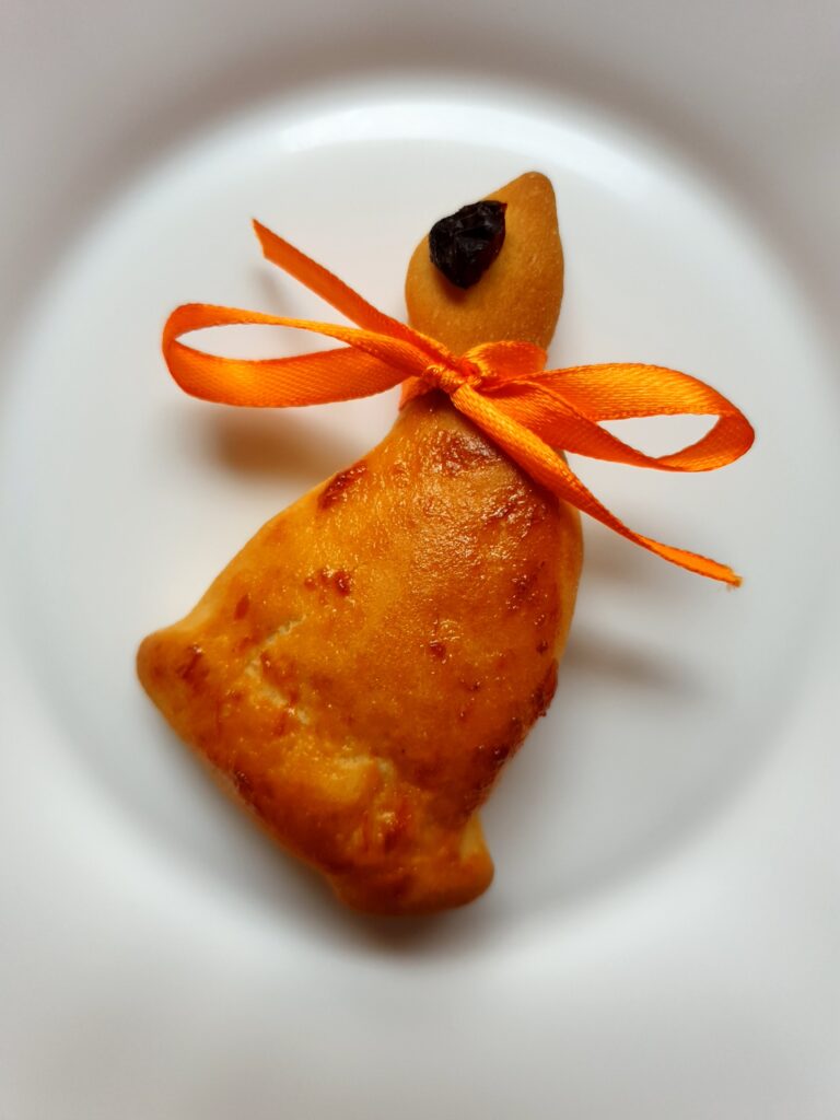 Márton napra készítettünk kis libákat az ovisoknak. Nem akartam linzert vinni, ezért kitaláltam, hogy megpróbálkozom a kelt libákkal. Egy kalácsszerű masszát kaptam, ami tej-és tojásmentes lett, de mivel az ovisok között nincs gluténérzékeny, csak tej-tojás és mogyoróallergiás, így most kivételesen búzaliszttel dolgoztam. Hát, mit ne mondjak, zongorázni lehet a különbséget. Iszonyat jó volt dolgozni az anyaggal, nem szakadt, nem ragadt, pikkpakk megkelt és nagyon könnyen engedelmeskedett. Hamar kész is lettünk.
